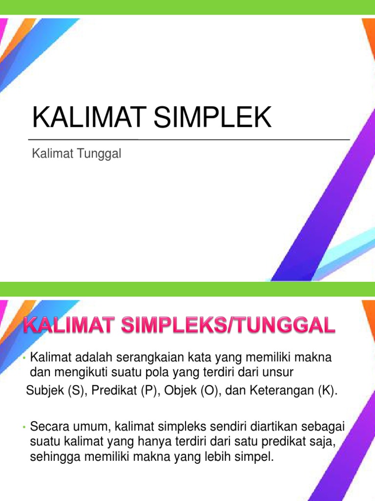 Kalimat simpleks dan kalimat kompleks sebuah paragraf dibentuk dari beberapa kalimat sederhana dan kalimat rumit. Kalimat simpleks dan kalimat kompleks bukan merupakan kajian baru dalam bahasa indonesia. Kalimat memiliki elemen kalimat yang terdiri dari subjek, predikat, objek, keterangan dan pelengkap. Berdasarkan jumlah predikatnya, ada dua jenis kalimat yakni kalimat simpleks dan kalimat kompleks. Contoh kalimat kompleks dan kalimat simpleks. Dua diantara pola kalimat dasar beserta contohnya yang pernah dibahas adalah pola s p pel dan berikut ini akan ditampilkan contoh kalimat simpleks baik dengan pola s p s p o s p k dan s p o k contoh kalimat majemuk setara beserta pola spok idschool. Kalimat simpleks adalah tipe kalimat yang hanya terdiri dari satu subjek dan satu predikat.dengan kata lain, kalimat simpleks merupakan kalimat. Contoh kalimat simpleks beserta spok. Biasanya kalimat ini digunakan untuk menjelaskan kondisi seseorang ketika sedang mengerjakan suatu pekerjaan. Contoh kalimat simpleks pola kata benda (frase depan). Dalam interaksi tersebut pasti ada percakapan yang akan dilakukan dengan lawan bicara anda. Unsur inti (komponen inti) dalam satu kalimat simpleks hanya berisi satu informasi, yang ditandai dengan adanya fungsi predikat. Kalimat simpleks yang sesungguhnya sama dengan kalimat tunggal.
