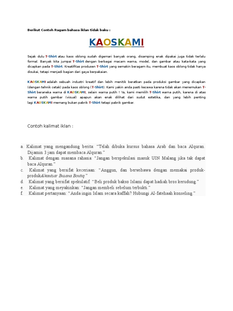 Contoh kalimat verb (kata kerja). Nowadays lots of children study to lie toward their parents. Bapak tri budiarta selaku dosen mata kuliah bahasa indonesia universitas gunadarma yang telah memberikan tugas mengenai ragam bahasa ini sehingga pengetahuan tim penulis dalam penulisan makalah. Ragam bahasa adalah kumpulan bahasa sebagai alat intraksi ragam bahasa tulis menggunakan media huruf untuk mengutarakannya atau mengungkapkannya. Berbeda dengan ragam bahasa ilmiah, ragam bahasa sastra banyak mengunakan kalimat yang tidak efektif. Novia mabrur isnaeni keanekaragaman itulah yang dinamanakan ragam bahasa indonesia terdapat dua jenis ragam bahasa yaitu, bahasa formal dan bahasa tidak formal. Contoh ragam lisan antara lain meliputi: Pada kalimat ragam ini, konjungsi yang paling acap kali diterapkan ialah bahwa. Terjawab • terverifikasi oleh ahli. Contoh kalimat ragam bahasa ilmiah? Indonesia merupakan sebuah negara yang terdiri atas berbagai macam. Contoh kalimat verb (kata kerja). Pada ragam bahasa baku tulis diharapkan penulis mampu menggunakan bahasa indonesia yang baik dan benar serta menggunakan ejaan bahasa yang telah.