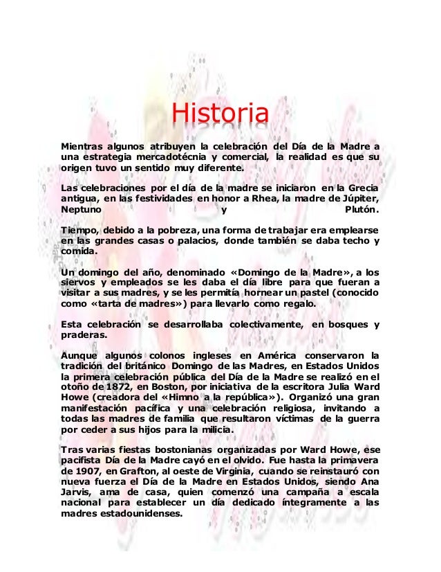 La celebración del día de la madre, más allá de ser un reconocimiento para ellas, contribuye a fomentar las desigualdades que afectan a las mujeres, pero también a los hombres, afirmó la consejera del instituto electoral de tamaulipas (ietam) nohemí argüello sosa. Los días festivos de estados unidos son actividades interesantes. El 12 de mayo de 1907, en virginia occidental, ana jervis dos años después de la muerte de su madre de igual nombre y quien por cierto admiraba las ideas de julia. Nos regalan su amor, nos brindan felicidad y su. Llamadas fuera de horario de oficina, contacte a: